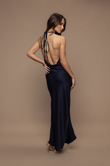 Fluid, sophisticated and sensual, the Gala dress is the perfect ally for the woman in search of timeless, refined elegance. With its satin fabric, cowl neck and back, it promises a graceful allure while offering lightness and freedom of movement thanks to its side slits.